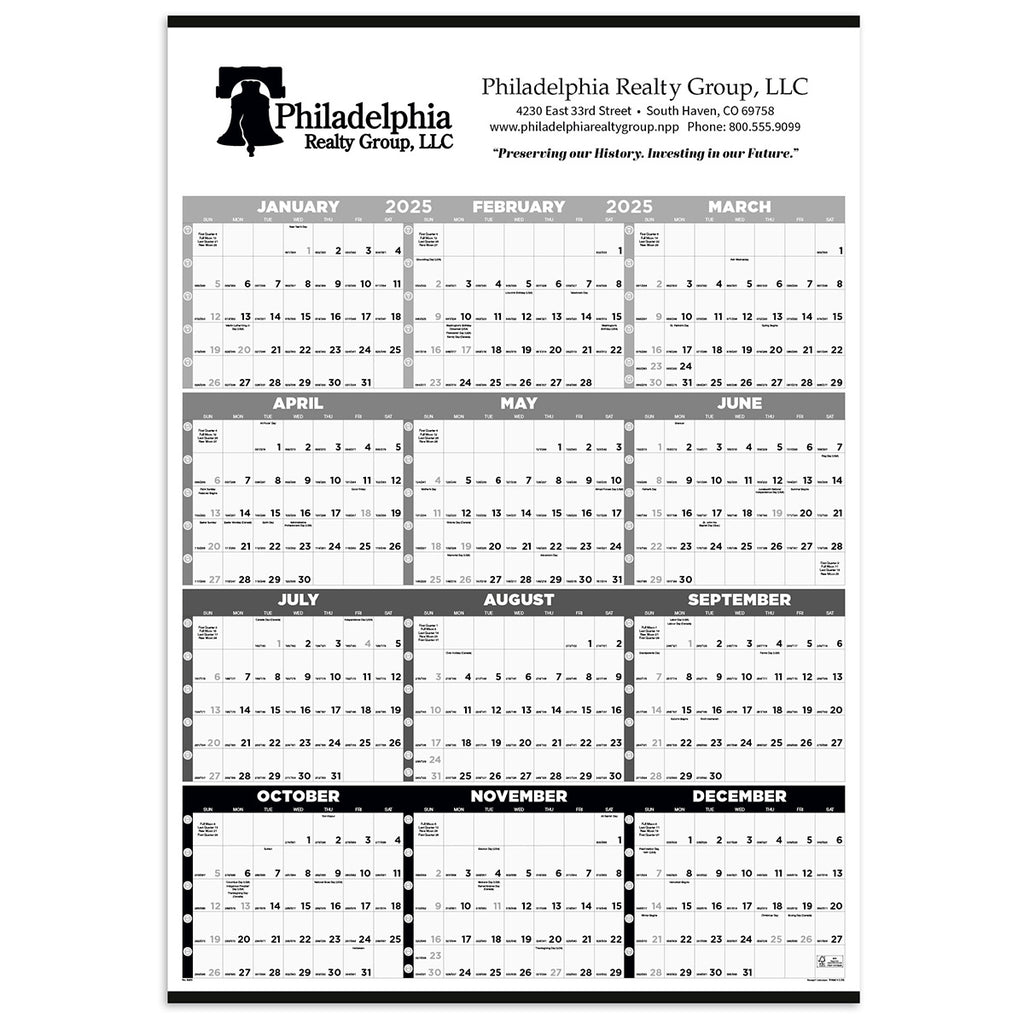 Add your corporate design to the Triumph Calendars Black & White Black & White Time Management Span-A-Year Non-Laminated calendar to make sure the receiver is organized and able to be on time all year. This is a simple, sustainably sourced way to provide a calendar for clients, staff, and anyone else you choose. Order today.The minimum order for this product is 100 pieces.