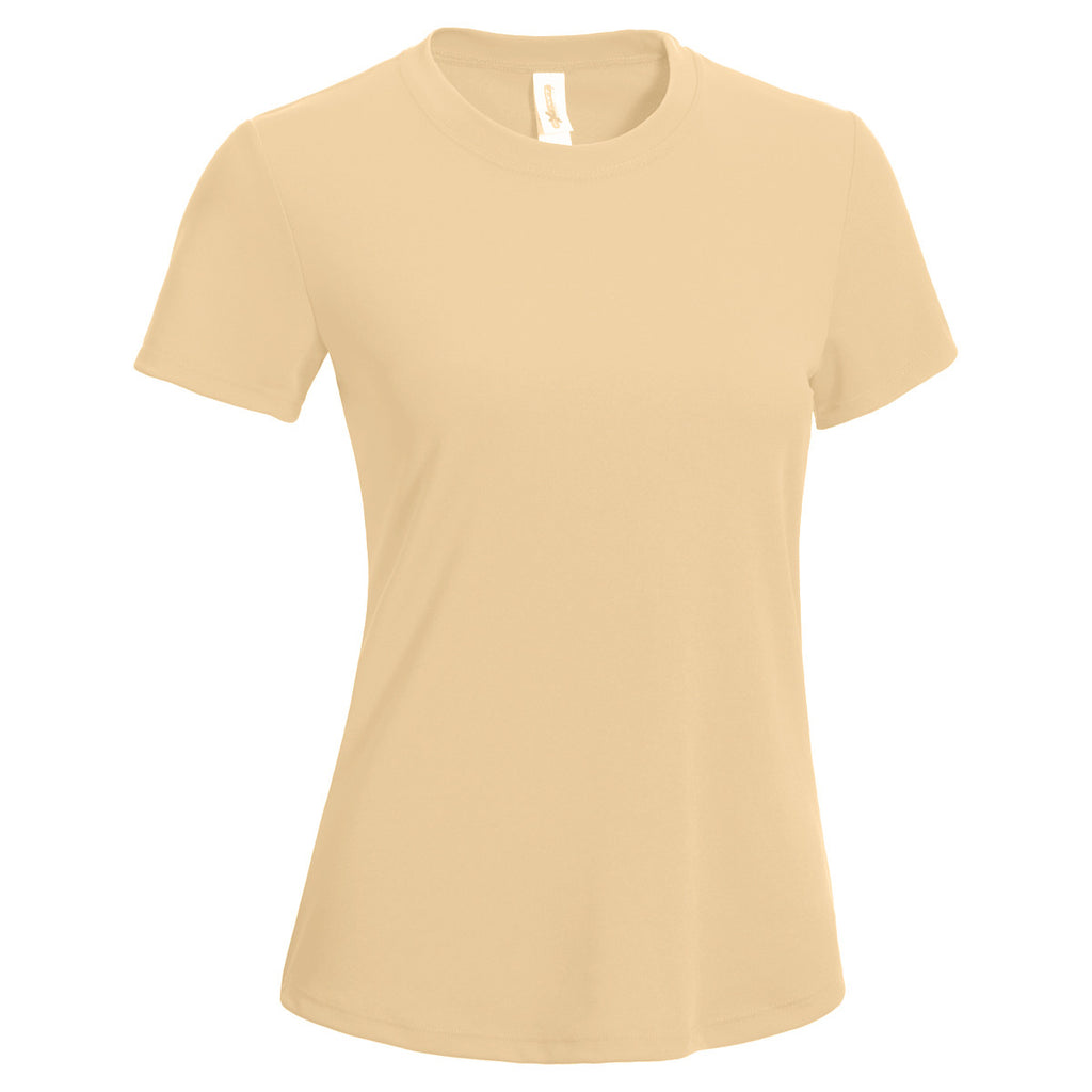 Expert Women's Vegas Gold Short Sleeve Tee features short sleeves, crew neck and crafted from 100% microfiber polyester, available in a range of hues. Perfect for everyday wear or the most intense workouts, this tee comes in a relaxed fit in feminine contoured design. Soft, breathable fabric expertly wicks sweat to keep you as dry as possible. Treated with BodyFreshe to eliminate odors and inhibit odor-causing bacteria. Promote a healthy and active lifestyle with these workout-ready shirts, ready to sport custom logo imprint of your company.The minimum order for this product is 12 pieces.