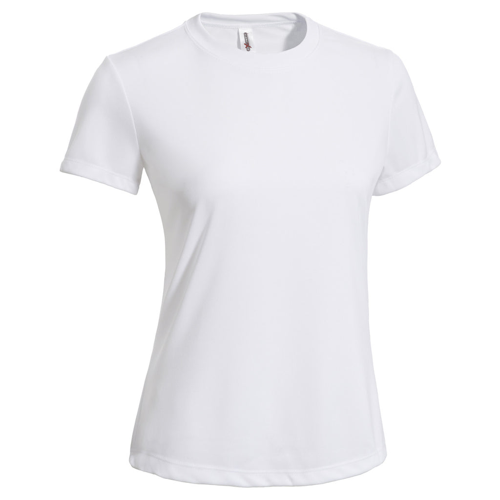 Expert Women's White Short Sleeve Tee features short sleeves, crew neck and crafted from 100% microfiber polyester, available in a range of hues. Perfect for everyday wear or the most intense workouts, this tee comes in a relaxed fit in feminine contoured design. Soft, breathable fabric expertly wicks sweat to keep you as dry as possible. Treated with BodyFreshe to eliminate odors and inhibit odor-causing bacteria. Promote a healthy and active lifestyle with these workout-ready shirts, ready to sport custom logo imprint of your company.