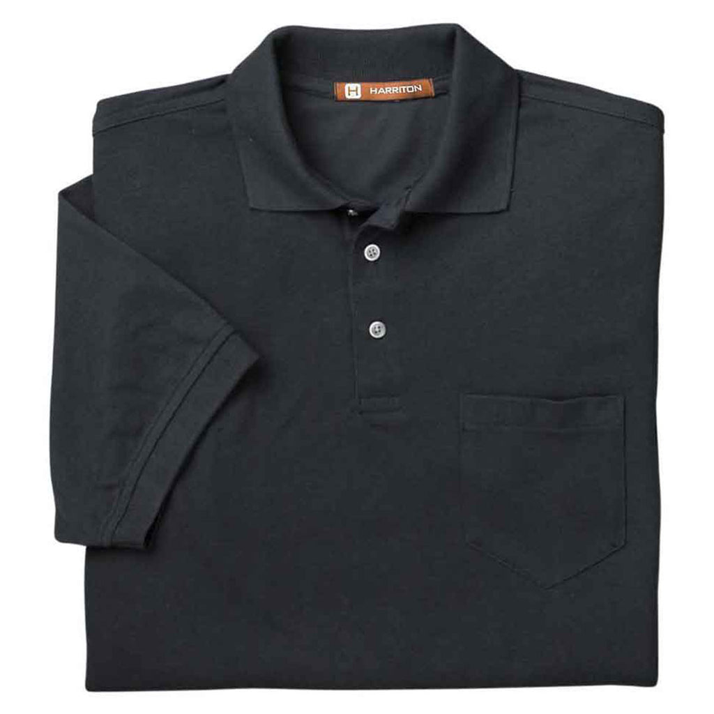 Harriton Men's Black 5.6 oz. Easy Blend Polo with Pocket