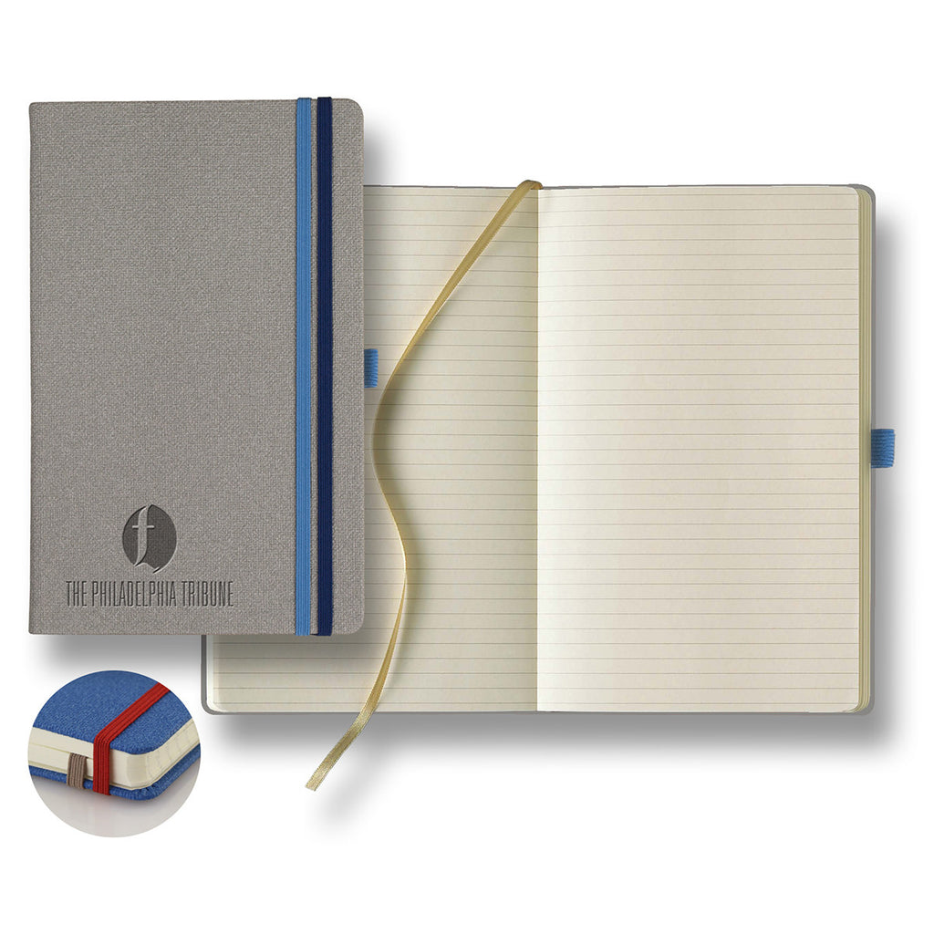 Bound in a rich and luxe material with an option of debossed imprint of your custom logo, Bi-Band Medium Ivory 240-page journal provides ample space for your notes in a stylish and fully-featured package. Promote your company and amp up your corporate swag with this customizable journal.