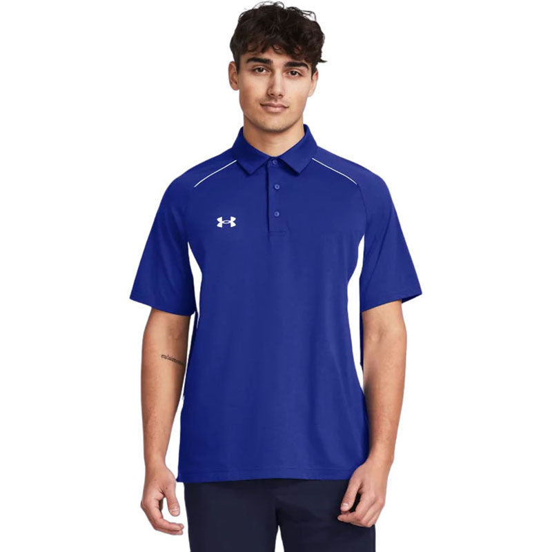 Under Armour Men's Royal/White Title Polo with corporate or custom embroidery creates a classic, high-end look that can serve as a uniform or golf shirt that all can love. The short-sleeved polo is sleek and versatile for daily wear as needed. Easily pair with a jacket, wear alone, or layer.Highlights