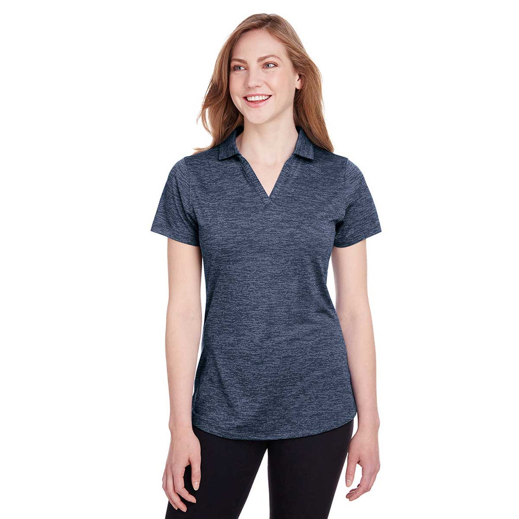 Stand out in a custom Puma Golf Women's Peacoat Icon Heather Polo with a feminine cut that fits well and stands up to long days at work or enjoying the great outdoors. Add your company logo to this polyester, ultra-lightweight polo to use as company uniforms that will stand up to hard work with moisture wicking and mechanical stretch. A corporate embroidery allows these V-neck polos to act as employee gifts or welcome additions to corporate events that will be remembered well. With several size options, these polos can be customized to fit your needs for your personal wardrobe or as end of the year gifts that serve a function.