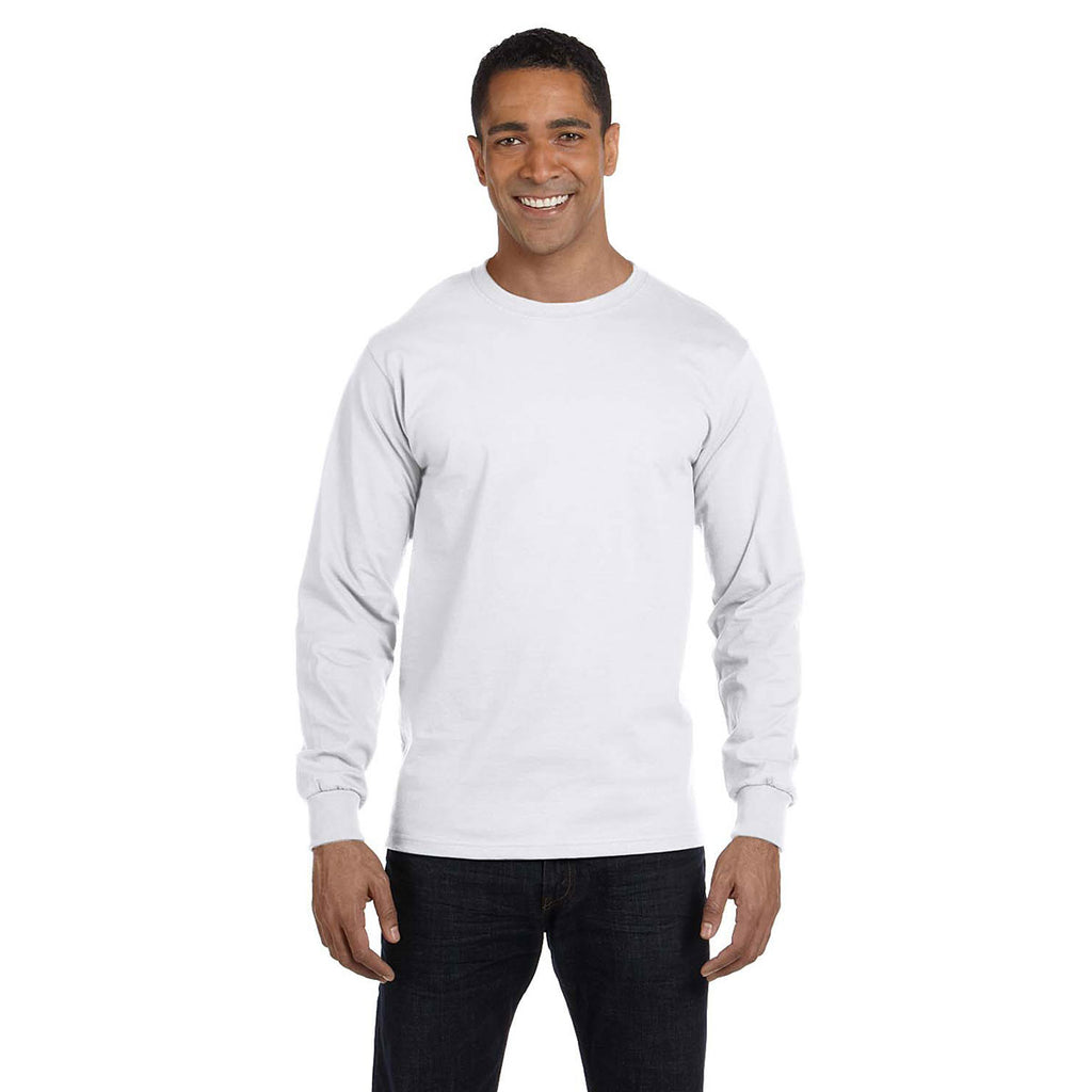 Add a screen print to this Hanes Men's White 6.1 oz Long-Sleeve Beefy-T to create custom employee apparel that will be an instant hit. Available in 23 different colors, one will be sure to compliment your custom logo. Created from 100% ringspun cotton with double-needle stitching throughout, the lay flat collar and tag-free label will make this a comfortable choice for everything from a trade show to golf events. Great for layering or wearing alone, this custom long sleeve tee will meet all your needs, whether they are focused around your company, a team, or just to beef up your wardrobe.Highlights
