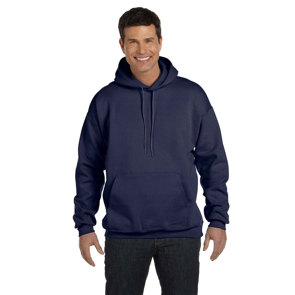 The perfect custom hoodie is tough to find, but the Hanes Men's Navy 9.7 oz. Ultimate Cotton 90/10 Pullover Hood is as close as you can get. Add your corporate screen print to one of the 12 available colors to create a hoodie that can be used as employee apparel or be given away at trade shows to draw attention to your company. Made of a predominately cotton and polyester blend, this jersey lined two-ply hooded shirt will keep you comfortable in cooler temperatures. Perfect for a morning run or a quick evening workout, this hoodie will be an instant favorite.Highlights