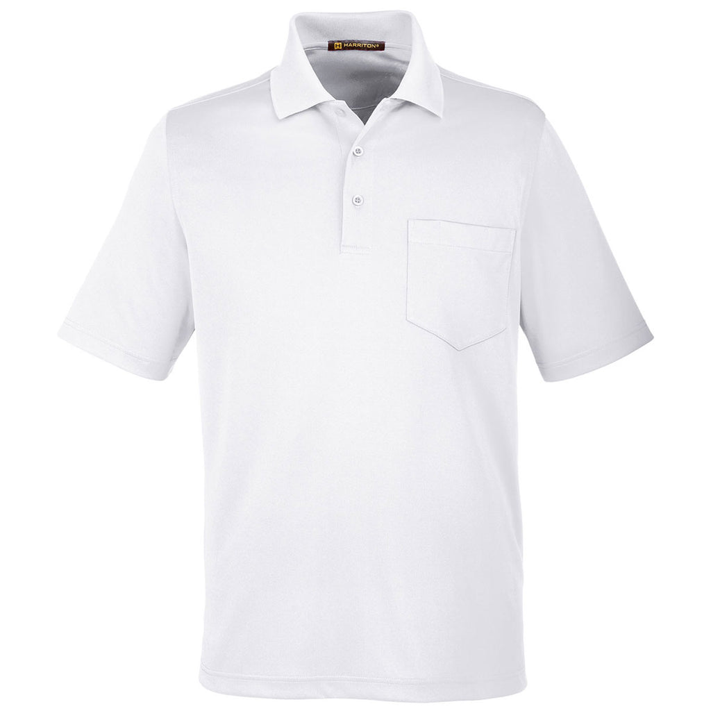 Harriton Men's White Advantage Snag Protection Plus Pocket Polo
