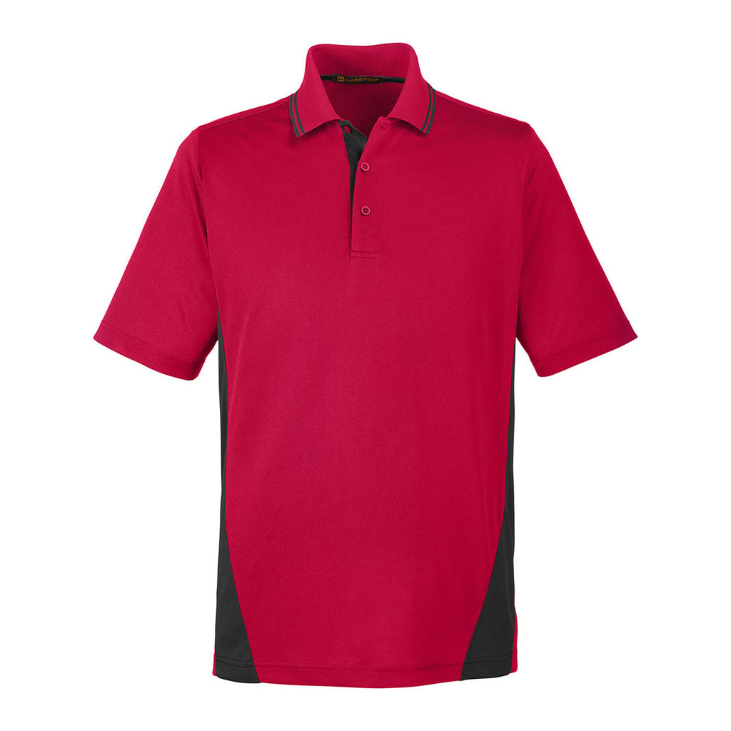 Harriton Men's Red/Black Flash Snag Protection Plus IL Colorblock Polo