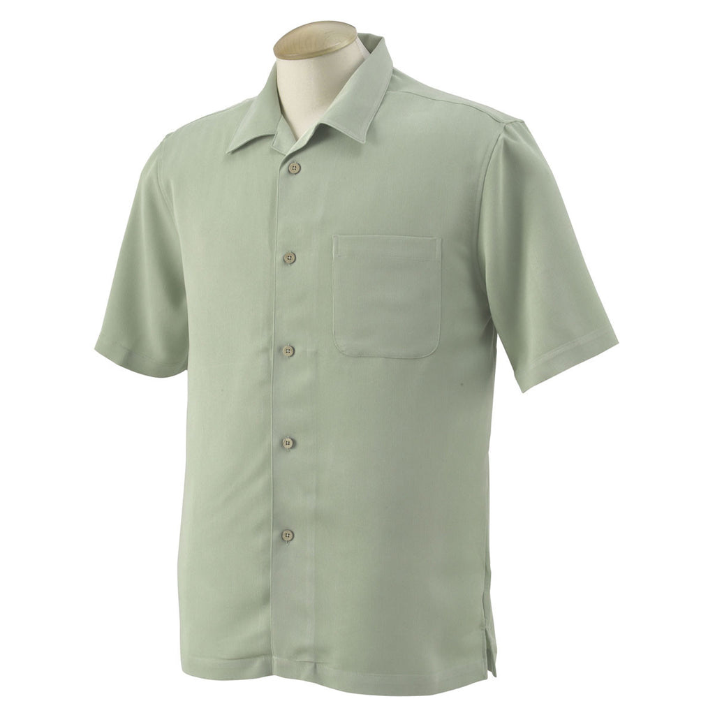 Sixty-six percent rayon and thirty-four percent polyester pieced Bedford cord comprise the rugged materials that make up the Harriton Men's Green Mist Bahama Cord Camp Shirt. The versatile shirt resists rips and tears to give you years of high-quality use. Wrinkle prevention properties allow you to wear the stylish camp shirt throughout the day, without unsightly wrinkles appearing on the fabric. The full-button front complements the self-fabric collar to create a fashionable corporate garment that is the perfect gift for the loyal customers of your business. Attach your corporate logo to increase recognition of your company at business seminars.Corresponding Women's Style: Harriton Women's Green Mist Bahama Cord Camp Shirt