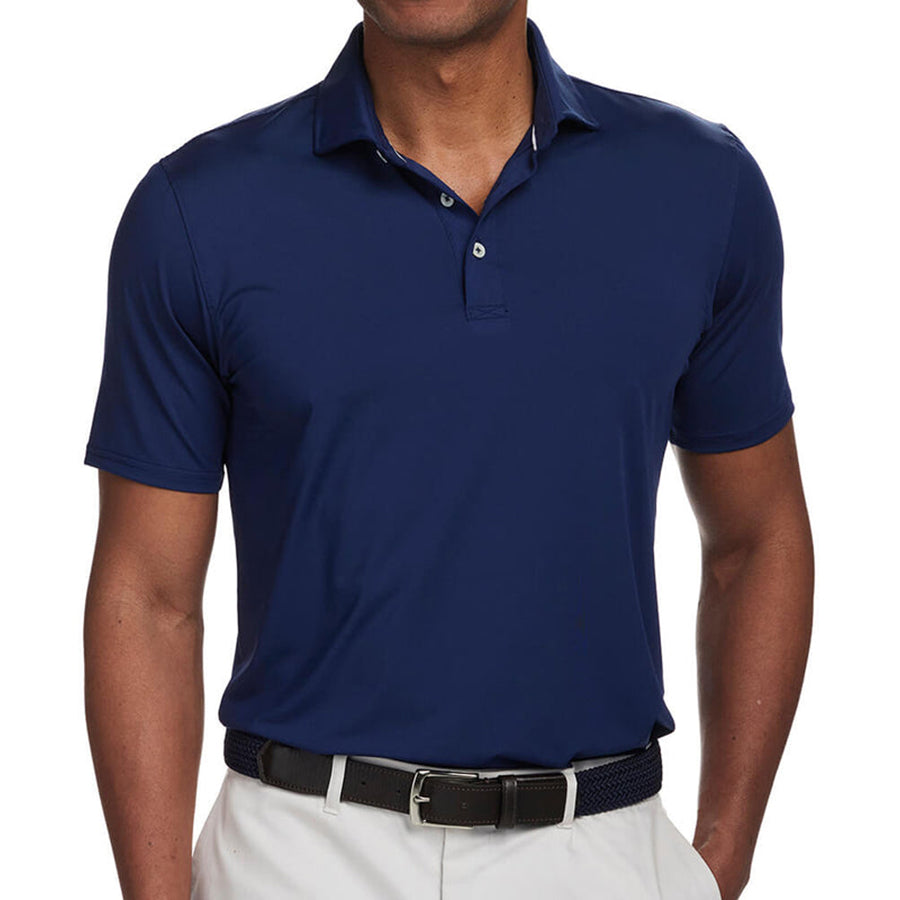 Choose embroidery for the Holderness & Bourne Men's Navy The Anderson Shirt for a high-end look that keeps you comfortable all day. Whether heading to the office or out with friends for a round of golf, this solid jersey knit shirt offers stretch, performance, and moisture-wicking to keep you comfortable. Place an order today.