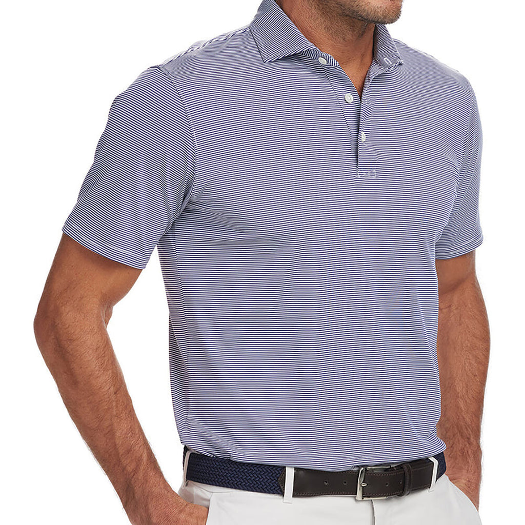 Enjoy a custom look with the Holderness & Bourne Men's Navy & White The Perkins Shirt. The soft stripes of this short-sleeve shirt are perfect for understated good looks. The lightweight yarn is perfect for warmer weather when you are hanging out with friends or practicing your putt. Place an order today before this shirt is gone.Highlights