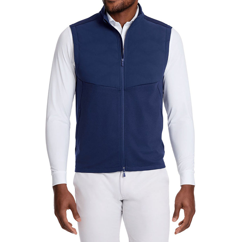 Custom-built for versatility, the Holderness & Bourne Men's Navy The Morris Vest in navy offers refined layering without restricting movement. Its lightweight insulation provides just the right warmth for early tee times or busy workdays. Clean lines and minimal branding make it easy to wear over a button-down, polo, or base layer for effortless polish.Highlights