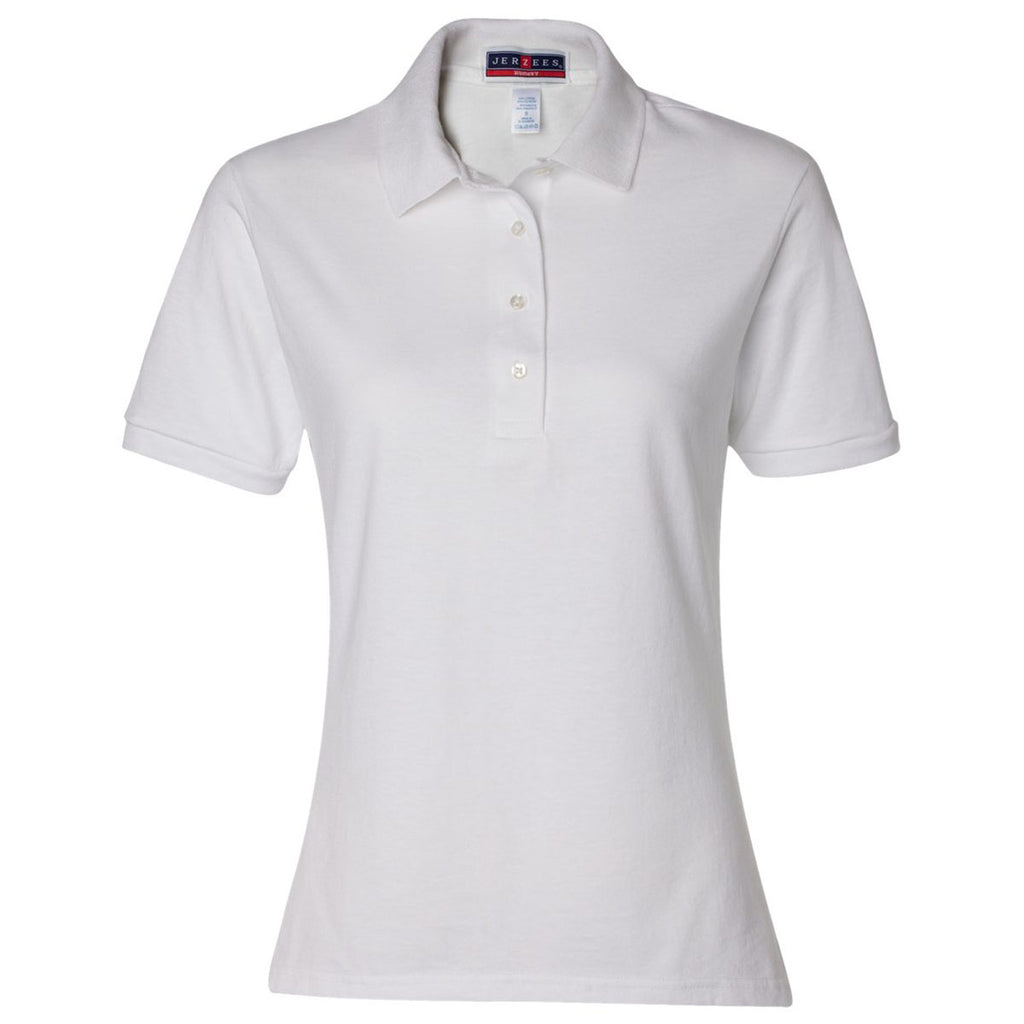 The custom logo Jerzees Women's White Spotshield 50/50 Polo is a great addition to your company's stock of event giveaway items. Add your brand name to the polo and hand it out at upcoming recruiting events and trade shows.Highlights