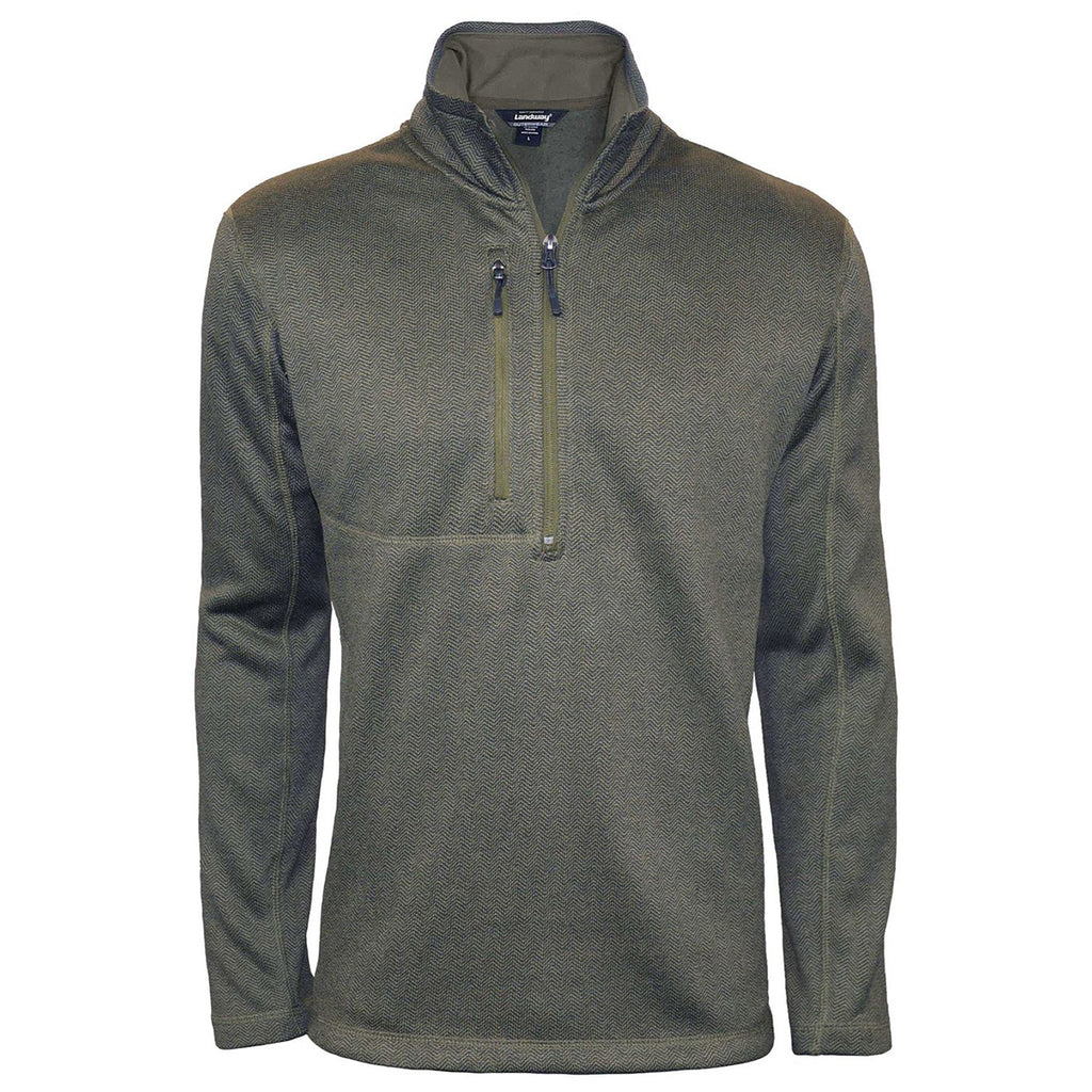 Landway Men's Olive Herrigbone Kodiak 1/4-Zip Sweater-Knit Fleece