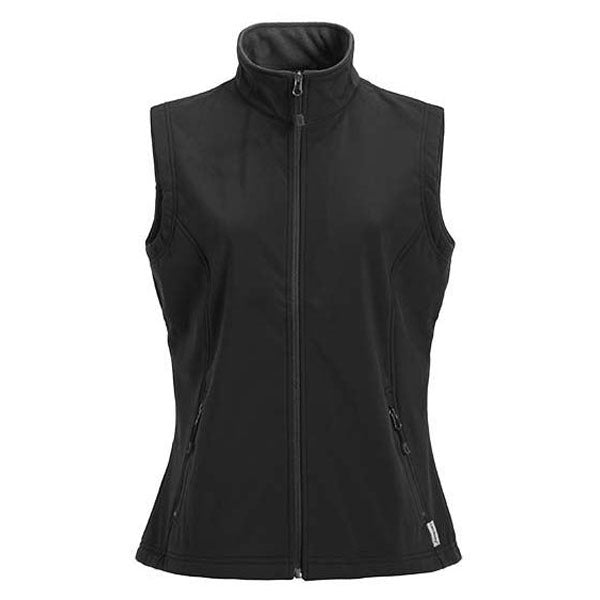 The company logoed Landway Women's Black Neo Soft Shell Vest includes smooth microfleece that produces another layer of cold weather insulation. Wear the vest as an inner layer during cold weather camping trips and never feel the discomfort caused by prolonged exposure to frigid temperatures. Water resistant properties allow you to spend considerable time outdoors during a snow storm to shovel the white stuff. Three layers of bonded polyester never rips and tears to give you long lasting durability. Attach your corporate logo to attract the customer prospects you meet at outdoor civic events.Corresponding Men's Style: Landway Men's Black Neo Soft Shell Vest