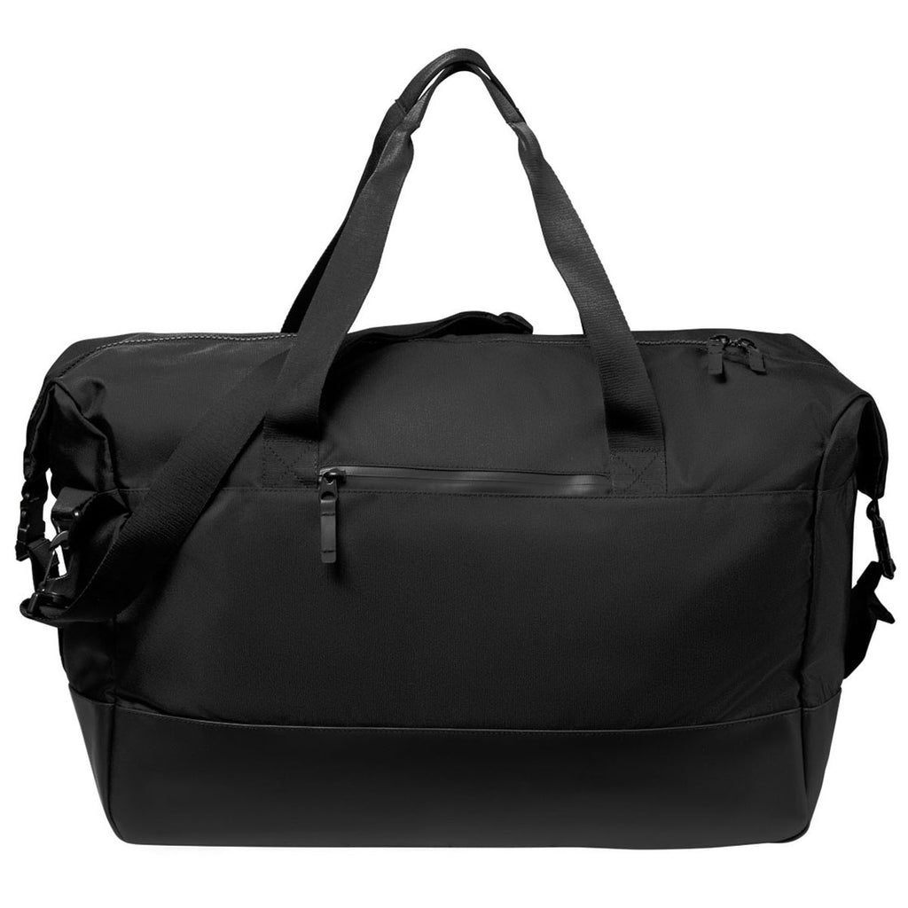 Add embroidery to the Mercer+Mettle Deep Black Weekender Duffle to make weekend travel a breeze. The minimalist design has a coated and molded main compartment that zips open and offers expandable quick release buckles. Pack up and head out, this bag is made for off-duty wear. Make your duffle unique with a custom logo. Place an order today.Highlights