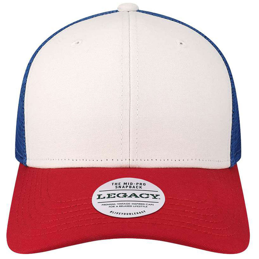 Legacy White/Red/Royal Mid-Pro Snapback Trucker Cap