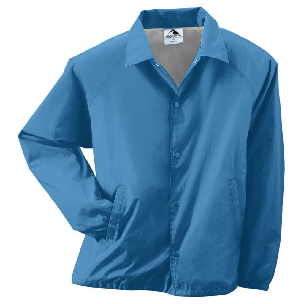 Be a winner in a custom Augusta Sportswear Men's Columbia Blue Nylon Coach's Jacket Lined. This retro styling has coach written all over it. The snap closures make it easy to wear or remove as needed if the big game gets heated. Choose this lightweight option with large front pockets for convenience and mobility no matter what you have scheduled. Order today.Highlights