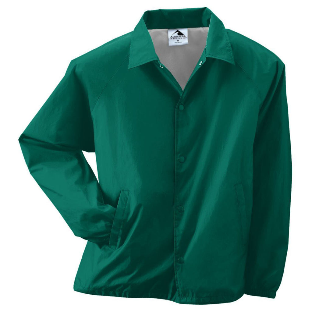 Be a winner in a custom Augusta Sportswear Men's Dark Green Nylon Coach's Jacket Lined. This retro styling has coach written all over it. The snap closures make it easy to wear or remove as needed if the big game gets heated. Choose this lightweight option with large front pockets for convenience and mobility no matter what you have scheduled. Order today.Highlights