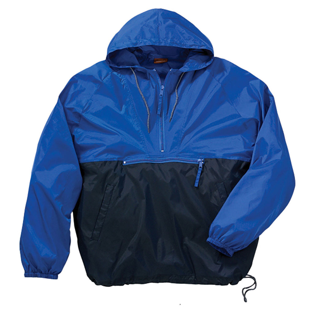One-hundred percent impossible to penetrate nylon gives the Harriton Men's Royal/Navy Packable Nylon Jacket incredible strength. Wind and water resistant, the all-seasons jacket represents the perfect outer garment for outdoor recreational activities, such as camping and backpacking. The lightweight hooded pullover conveniently packs into the top of the back collar. Use the center zippered pocket to store your cell phone for instant access to the office. The jacket folds into a size that allows you to place it in the pouch, which you attach to your belt. Add your company logo to let potential customers know about your brand.Highlights