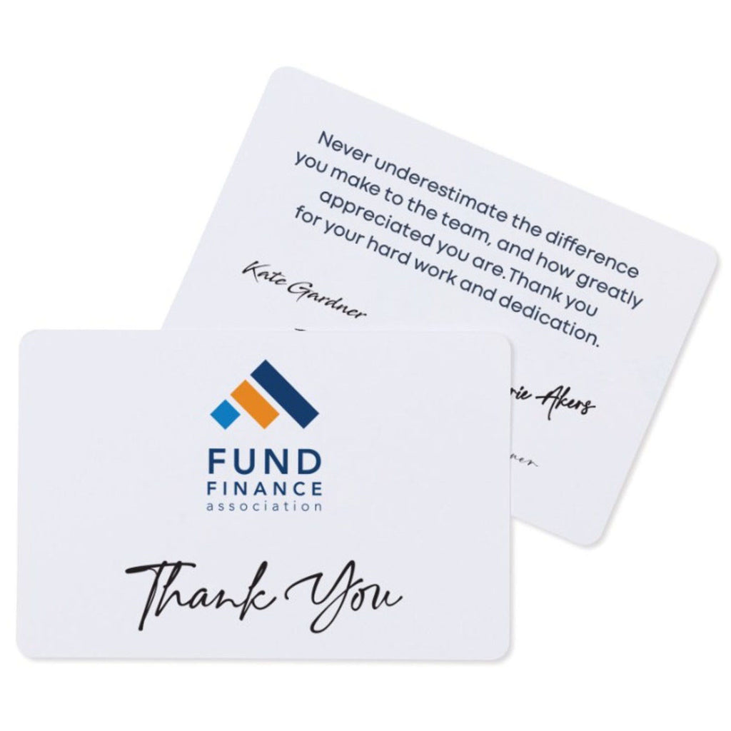 The Gemline White Thanks & Appreciation Greeting Card with a custom logo can be used to express gratitude with a personal touch. Whether for employees, clients, or special occasions, this card offers a thoughtful way to show appreciation. It's perfect for corporate gifting, thank-you notes, or as part of a branded customer experience.