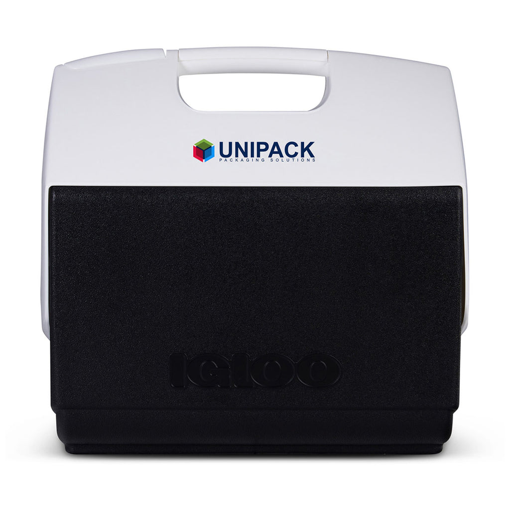 The Igloo White-Black Playmate Elite 16 Qt Cooler is a summertime accessory that will never go out of style. Along with its iconic appearance, this portable cooler comes complete with a convenient push-button lid design. It's also available in an array of color options, meaning there's sure to be one that effectively highlights your company's custom logo or design.