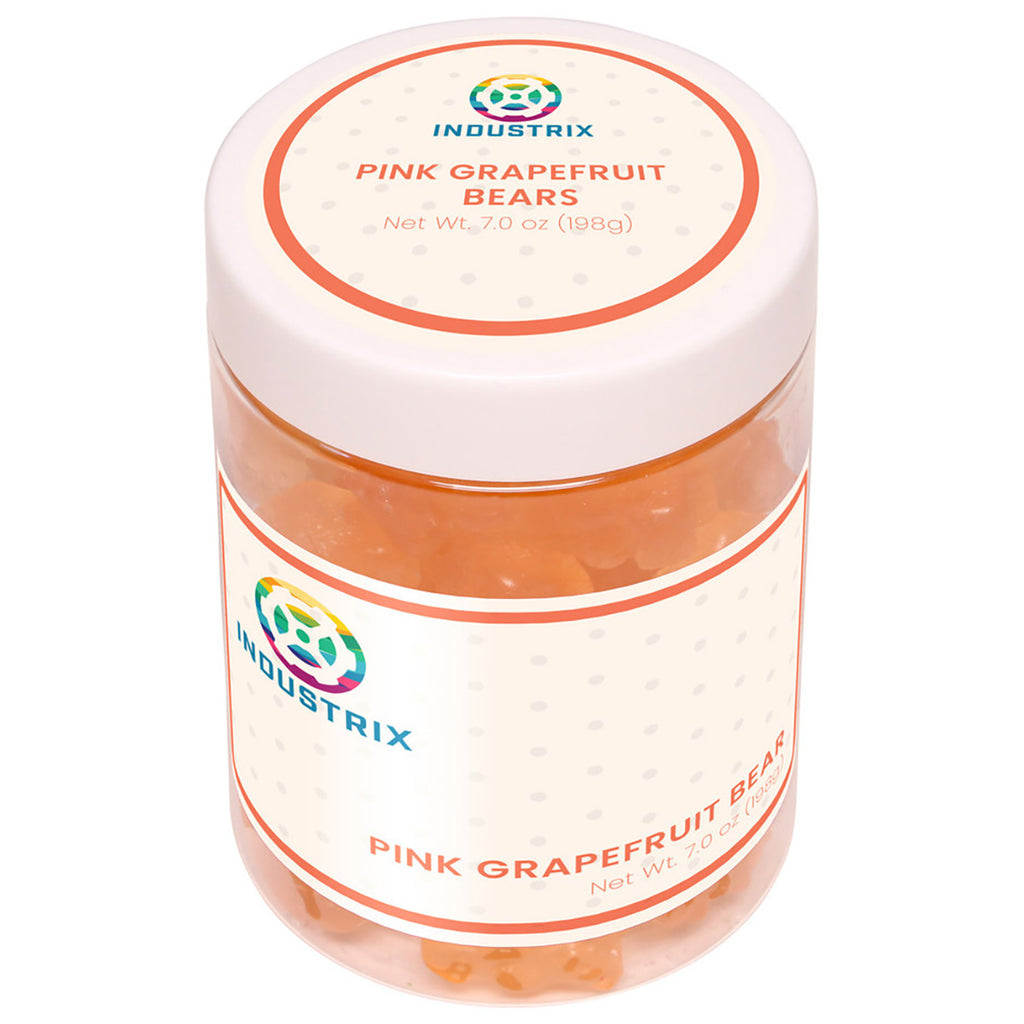 SugarSpot Clear Pink Grapefruit Bears: Large Jar with a custom logo is a treat for the distinguished pallet. These pink grapefruit gummies come in a jar that can be shared or enjoyed alone. Perfect for keeping on your desk at work, drawing people in at a trade show, or sharing as gifts, this is a must-have. Place an order right away.The minimum order for this product is 25 pieces.