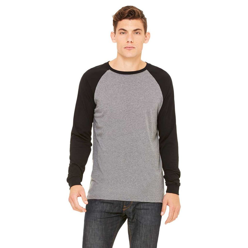 Bella + Canvas Men's Deep Heather/Black Jersey Long-Sleeve Baseball T-Shirt