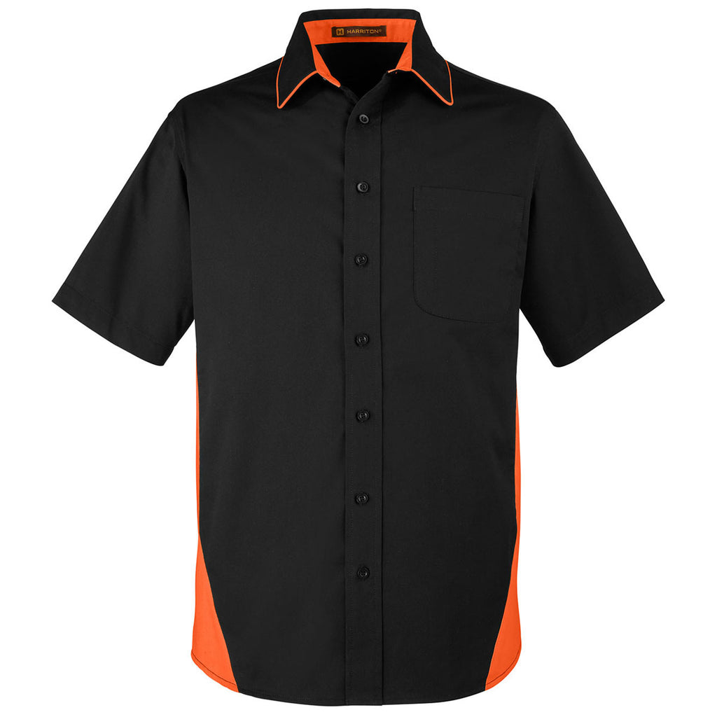 Harriton Men's Black/Team Orange Tall Flash Colorblock Short Sleeve Shirt