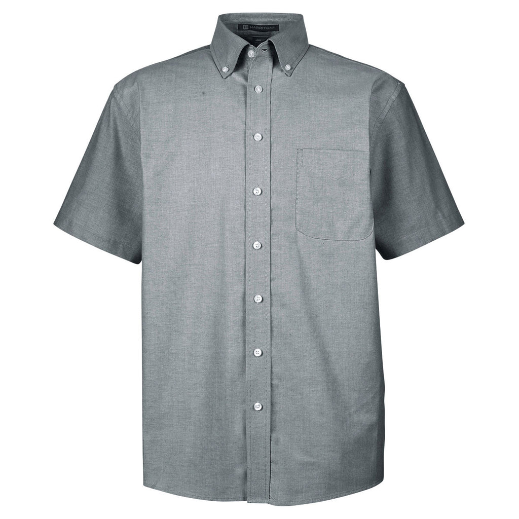 Harriton Men's Oxford Grey Short-Sleeve Oxford with Stain-Release