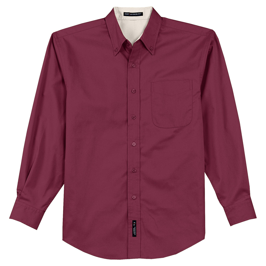 Port Authority Men's Burgundy/Light Stone Extended Size Long Sleeve Easy Care Shirt