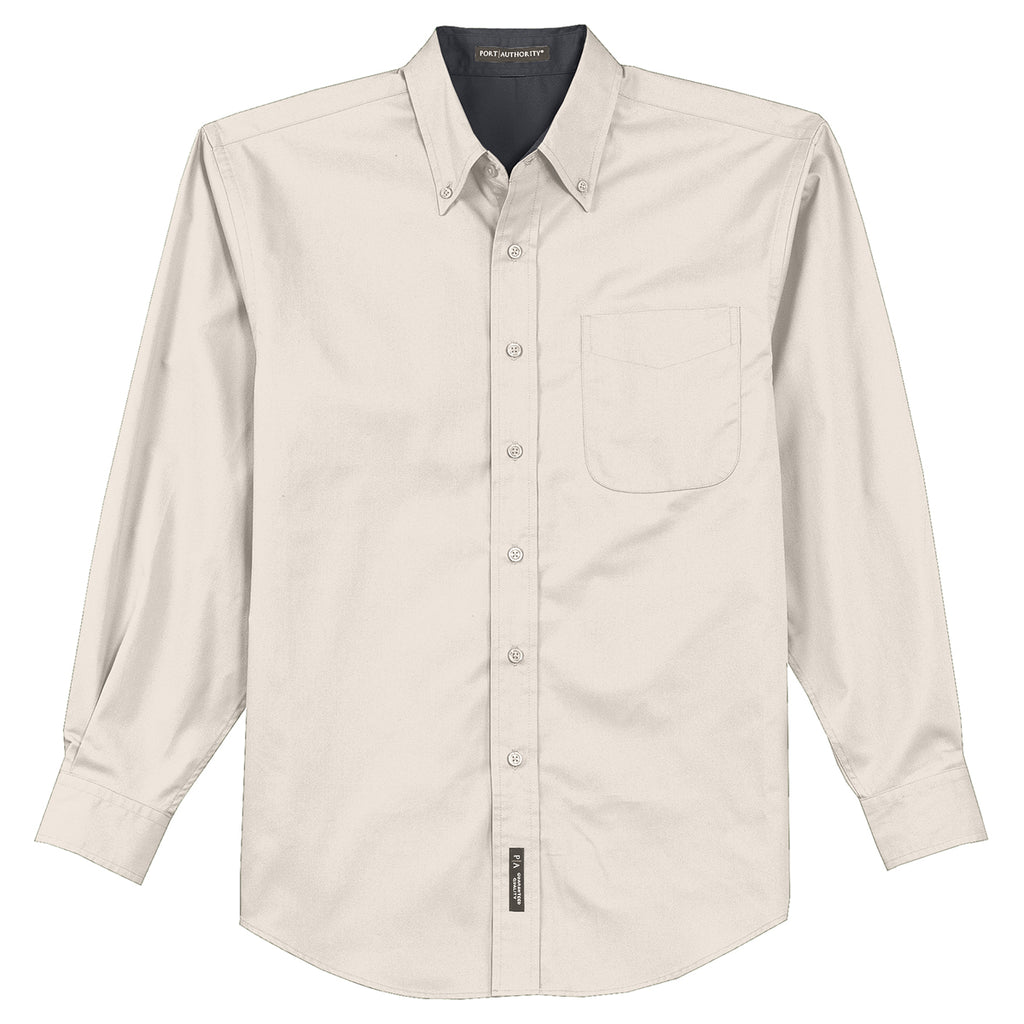 Port Authority Men's Light Stone/Classic Navy Extended Size Long Sleeve Easy Care Shirt