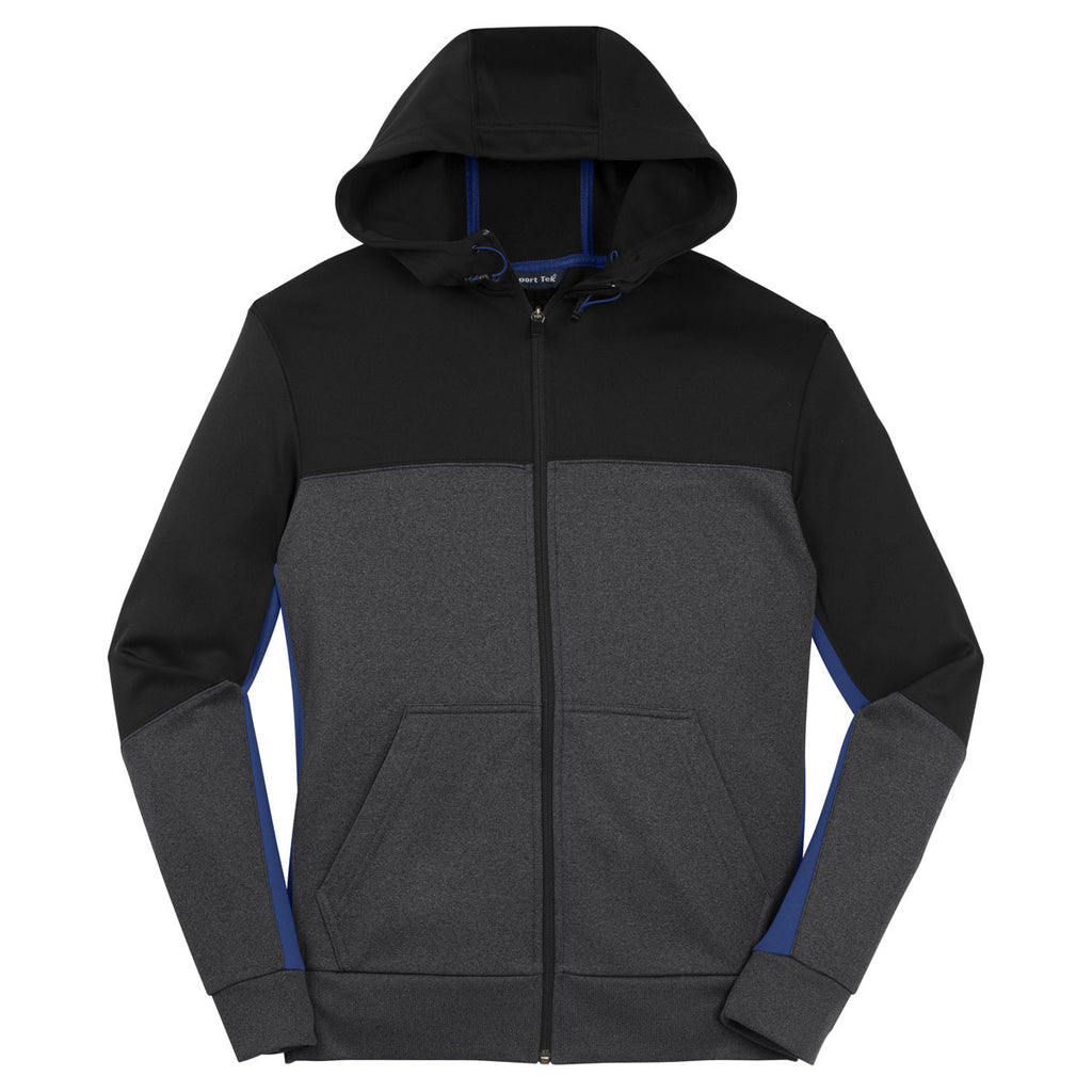 Sport-Tek Men's Black/ Graphite Heather/ True Royal Tech Fleece Colorblock Full-Zip Hooded Jacket