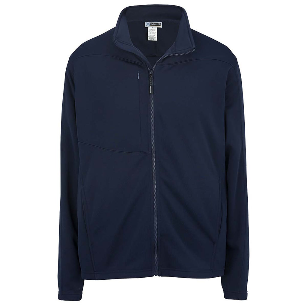 Don't sweat the details in a custom Edwards Men's Navy Performance Tek Jacket in five classic colors. Made of 100% bonded polyester fleece this jacket will keep you warm and dry with moisture wicking and 2 layer bonded fabric. Add a corporate embroidery or company logo to use these jackets as part of employee apparel or gift these as part of corporate uniforms. The full length wind guard and stand up collar will keep you protected as you go about your day. Easy to care for fabric means that home laundering is simple and can be done as often as needed.Highlights