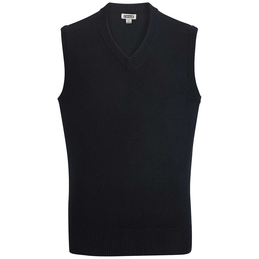 Edwards Men's Navy Jersey Knit Acrylic Vest with a custom logo is a simple way to dress up an outfit. The midweight V-neck easily layers to create a comfortable look that remains professional. Great as a gift, especially for the holidays, this vest will upgrade any wardrobe. Place an order soon before these sell out.Highlights