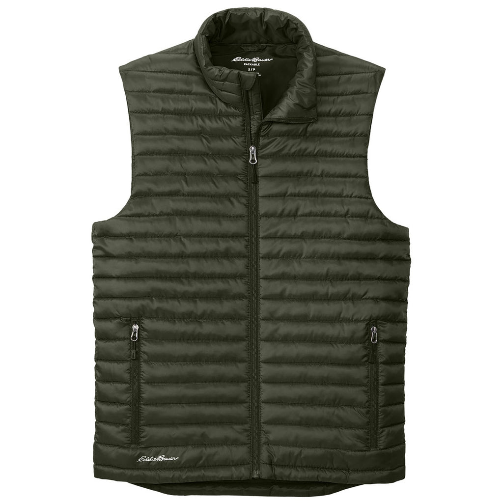 Eddie Bauer Men's Olive Green Packable Quilted Vest with a custom design is a fun and functional way to stay toasty while enjoying the Great Outdoors. This packable vest can be worn and then easily packed away when it is no longer needed for the day. Perfect for hiking, camping, and hunting. Place an order right away.This product can only ship within the United States, Puerto Rico, Canada, and Mexico.