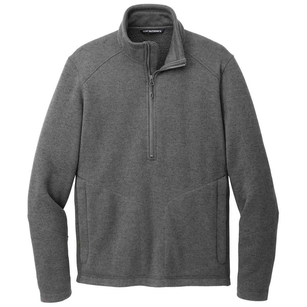 Port Authority Men's Grey Smoke Heather Arc Sweater Fleece 1/4 Zip