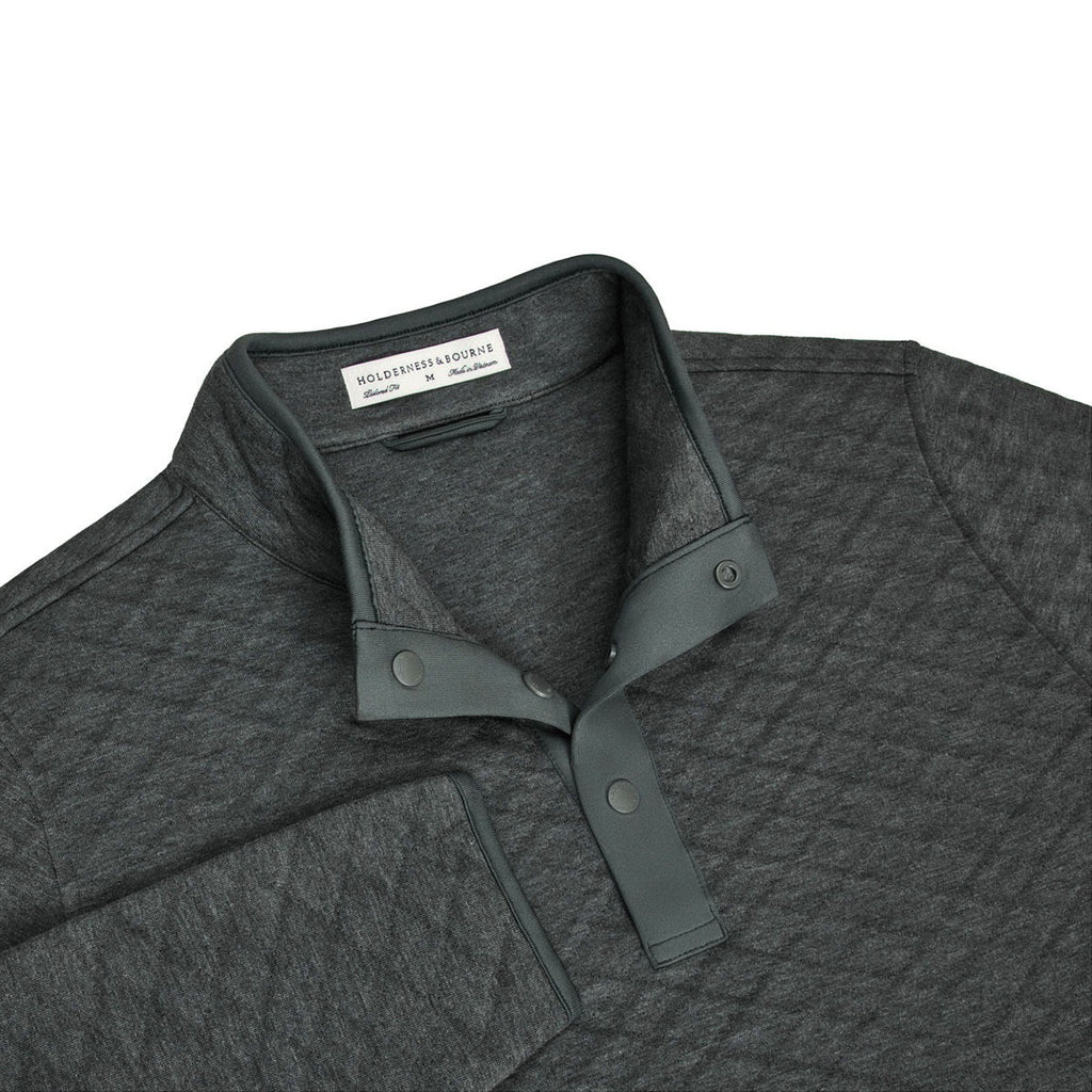 Corporate layering gets a refined upgrade with the Holderness & Bourne Men's Heathered Ivy The Sullivan Pullover in heathered navy. This pullover is made from performance fleece and delivers lightweight warmth, stretch, and structure without bulk. The sleek design transitions easily from the course to casual Friday, making it a staple for cool-weather comfort and effortless professionalism.Highlights