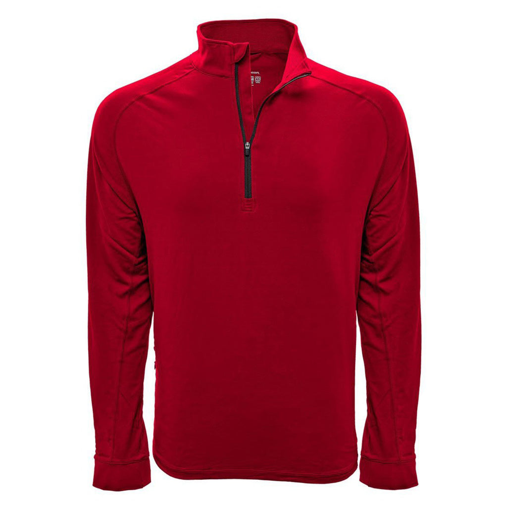 Performance stretch fabric makes the custom logoed Levelwear Men's Flame Red Peak Quarter Zip ideal for active professionals. Anti static properties prevent unexpected shocking moments during outdoor civic events. Twelve percent spandex combines with tear resistant polyester to produce a quarter zip for all seasons. Wear the stylish corporate apparel to work as an outer layer and put on the moisture wicking jacket as an inner layer to ensure maximum comfort during both cold and warm weather months. Attach your company logo to create a powerful marketing platform for your products and services.