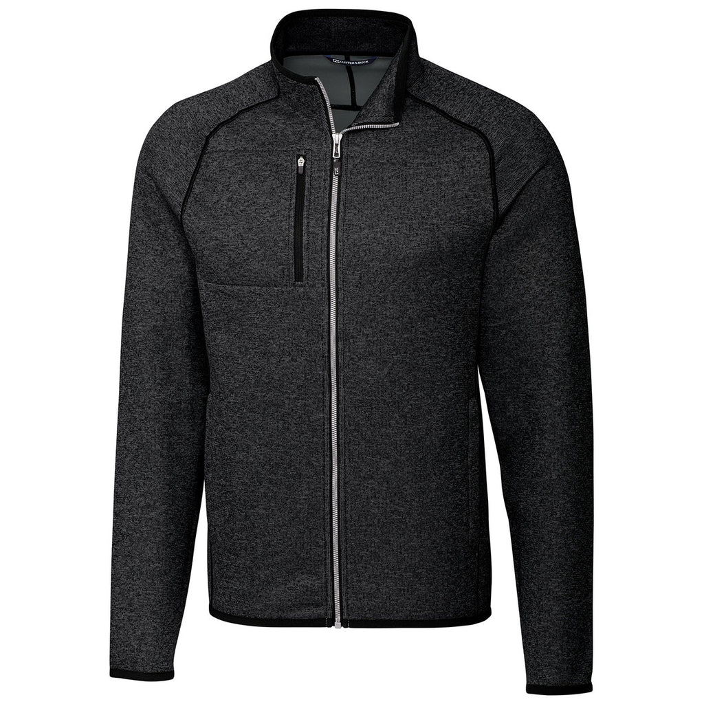 The Cutter & Buck Men's Charcoal Heather Mainsail Jacket offers a modern style with ideal warmth. Add your custom logo to the front of the jacket and you can turn this already exceptional item into an advertising item for your company. This corporate apparel product is available in a variety of appealing colors with welcome features such as a 100% polyester material, sweater knit material, brushed fleece interior, mock neck full zip, zippered chest pocket, and CB logo at back yoke. This jacket makes an excellent employee apparel gift as well as to hand out as a giveaway gift at any upcoming corporate event.Highlights