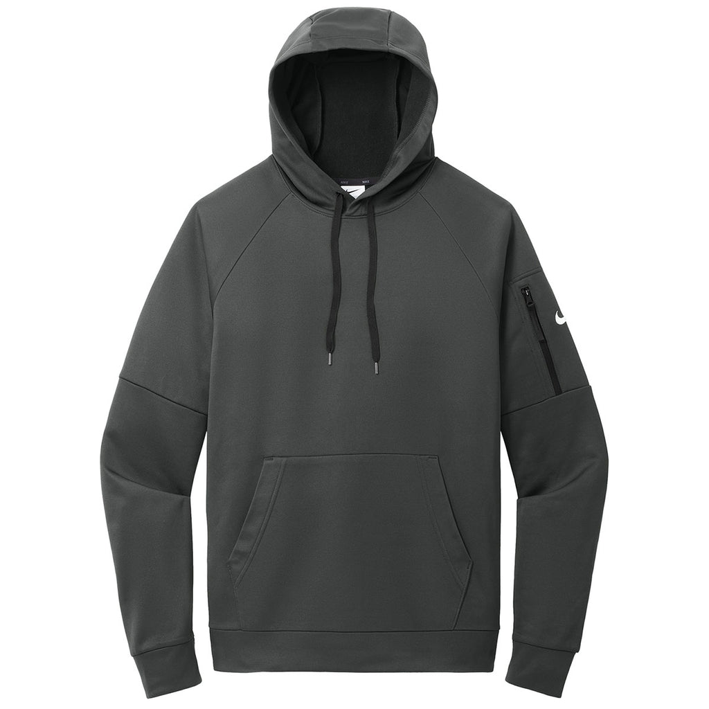 Create a custom look with the Nike Men's Anthracite Therma-FIT Pocket Pullover Fleece Hoodie. This easy-to-wear pullover is made to bring heat to your workout, whether indoors or out. The Therma-Fabric keeps your body heat in no matter the conditions outside. Layer under a jacket or wear alone. Stay warm with the Nike Therma-FIT Hoodie.This product cannot ship outside of the United States.