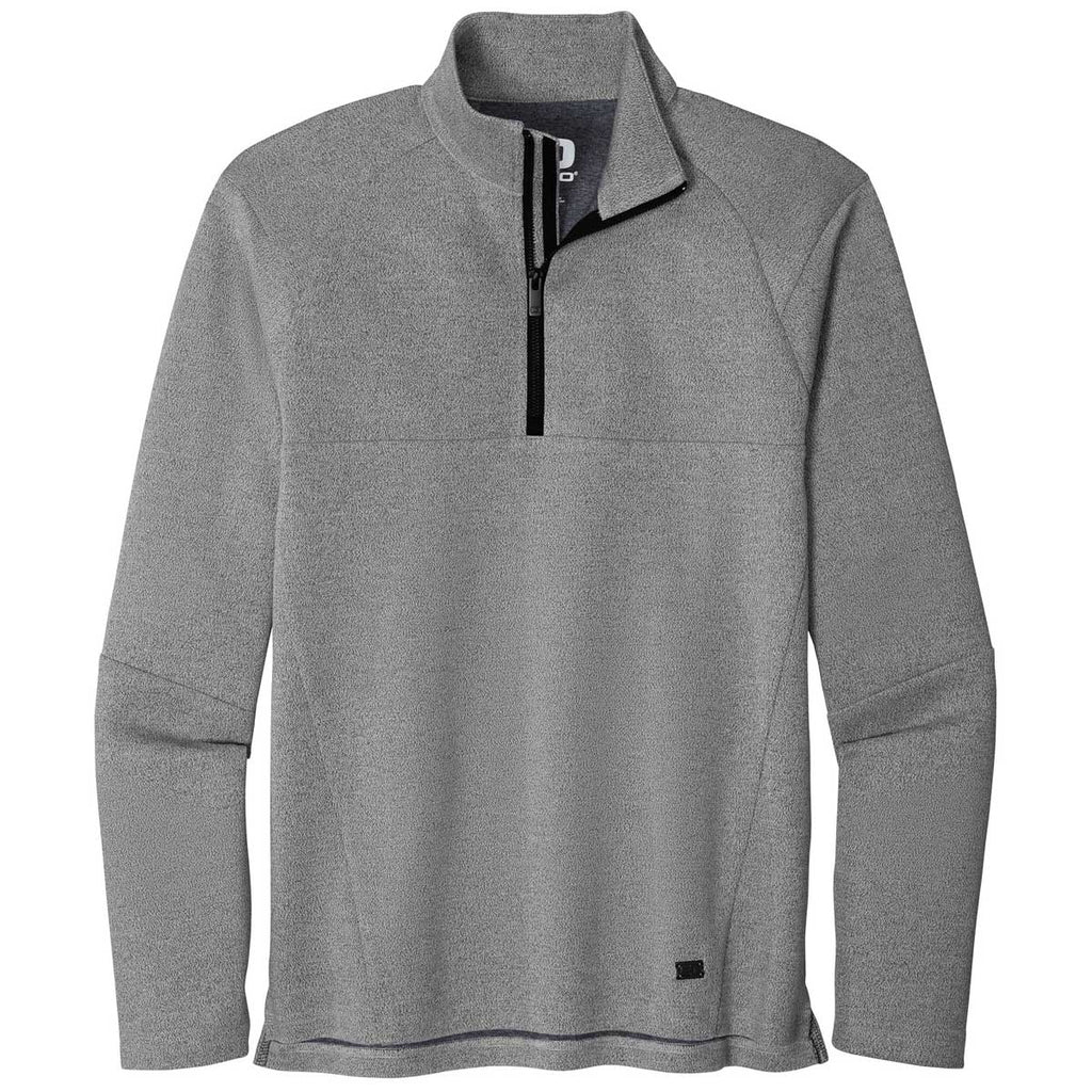 Be versatile in a custom embroidery OGIO Men's Petrol Grey Heather Transition Quarter Zip. This sleek look transitions the working man from the corporate apparel look to the afterhours style he needs to meet friends for a drink. Easy to layer, this 1/4 zip can be slipped over a polo, tee, or button up for a casual look. Made of a cotton, poly, and spandex fleece, this 1/4 helps you relax and unwind whether commuting home or moving on to the next activity. Add a company logo to use as employee gifts for the holidays or for a corporate event in which prizes are given.