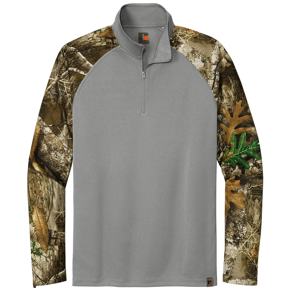 Russell Outdoors Men's Grey Concrete Heather/ Realtree Edge Realtree Colorblock Performance Quarter Zip