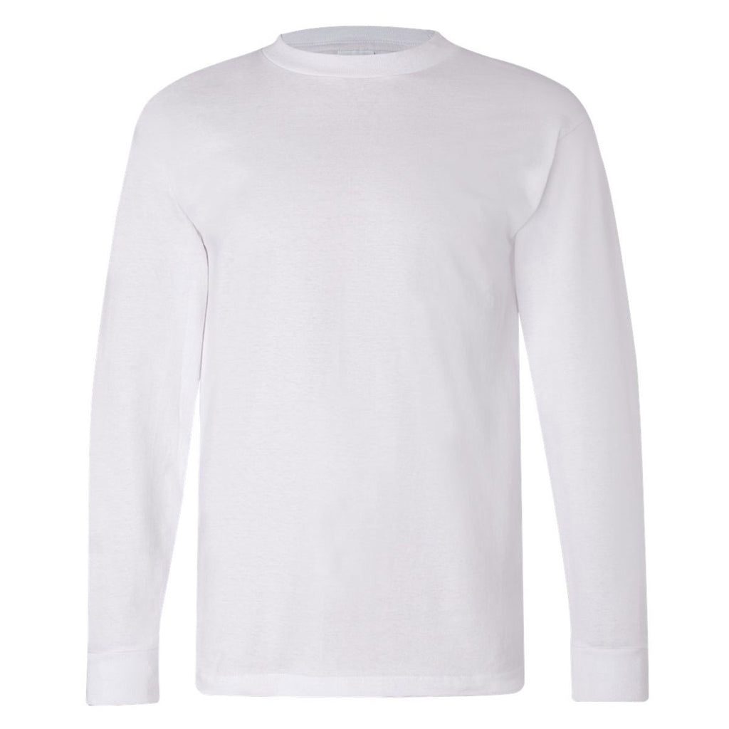 The Bayside Men's White USA-Made Long Sleeve T-Shirt, with your company's custom logo, would look great on your employees whether they're at work or at play. This 100% cotton T-Shirt is available in a wide assortment of colors, so your logo would blend in no matter its color or design. You could order a batch of these long-sleeve shirts as company uniforms for your service or delivery workers out in the field. Or they'd work well as uniforms if your company takes part in corporate sports leagues. These shirts are also suitable for company events such as trade shows.Highlights