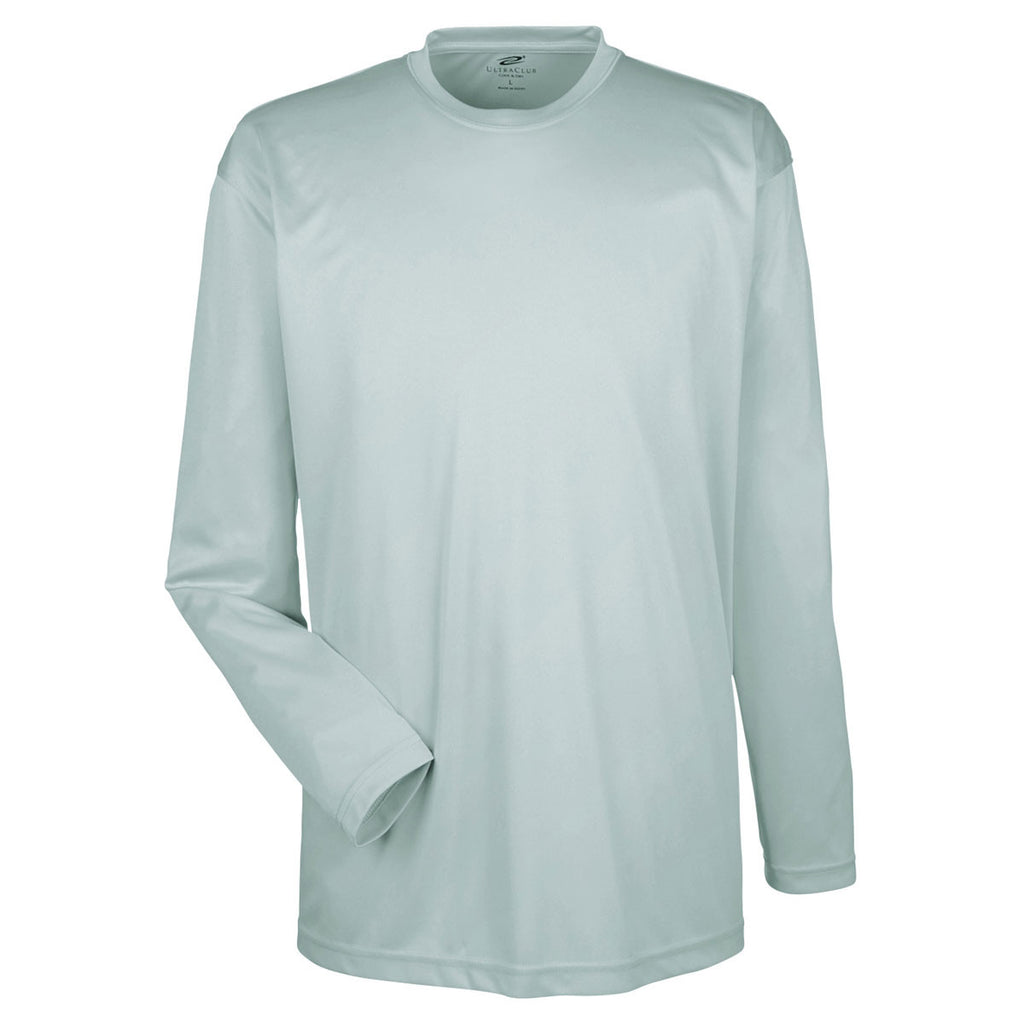 The UltraClub Men's Grey Cool & Dry Sport Long-Sleeve Performance Interlock T-Shirt contains moisture wicking technology that prevents sweat from ruining your day. Snag-resistant 100% micro-polyester refuses to rip and tear to provide you with years of long lasting durability. Strong ultraviolent ray protection prevents the sun from hurting sensitive skin tissue. The stylish neck tape attracts the attention of the professionals you meet at corporate events. One-quarter inch top stitching bolsters the strength of the high performance interlock t-shirt. Add your corporate logo to spread your company's high-quality image everywhere you go.Highlights