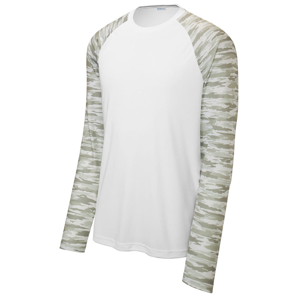 Sport-Tek Men's White Drift Camo Colorblock Long Sleeve Tee