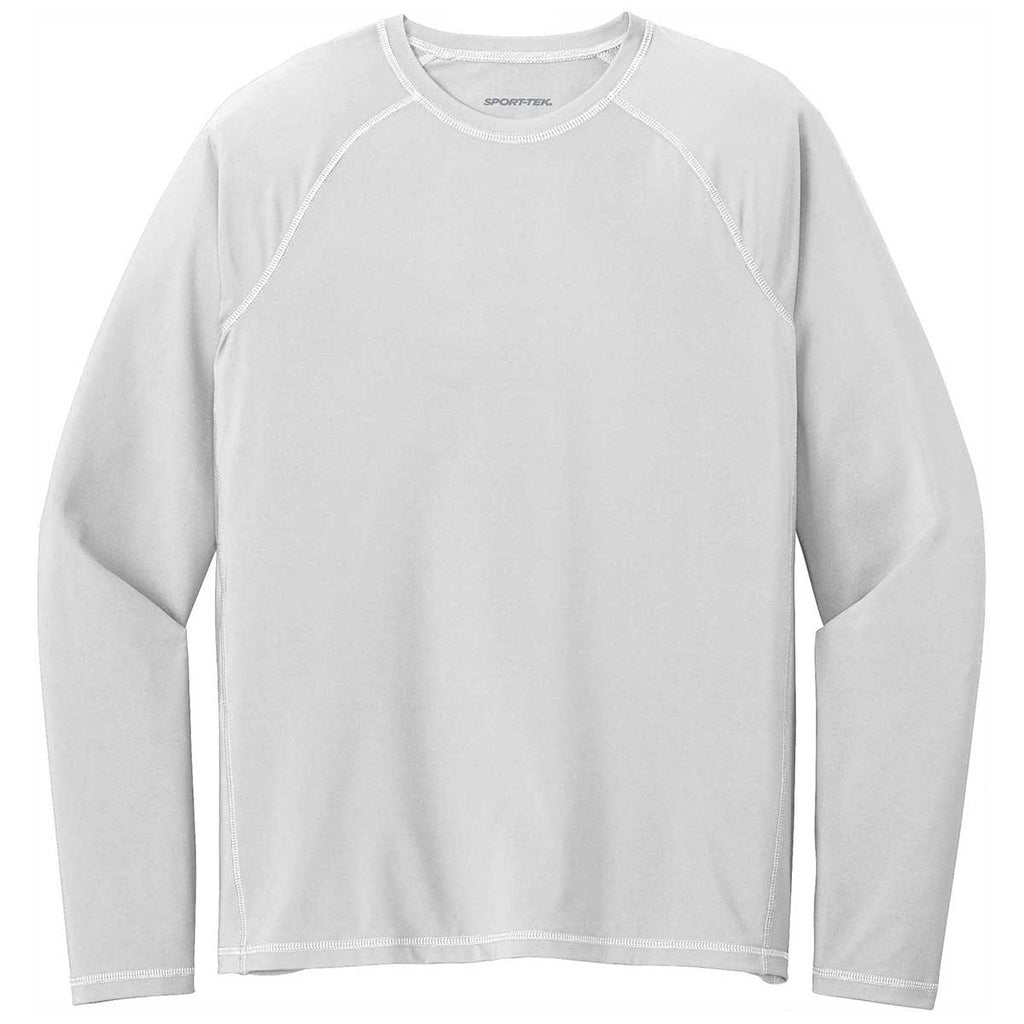 Be ready to enjoy the great outdoors with a custom Sport-Tek Men's White Long Sleeve Rashguard Tee. This high performance tee with PosiCharge technology allows for a heat transfer custom logo that will not fade as normal logos often do. The poly/spandex blend is perfect for water sports or team events. Add the company logo of your choice of create a custom logo to separate teams on this long sleeve performance tee. A UPF rating of 50 means the sun is no match for this tag-free tee. Raglan sleeves paired with underarm gussets allow for ease of movement whether swimming laps or competing.Corresponding Women's Style: Sport-Tek Women's White Long Sleeve Rashguard Tee