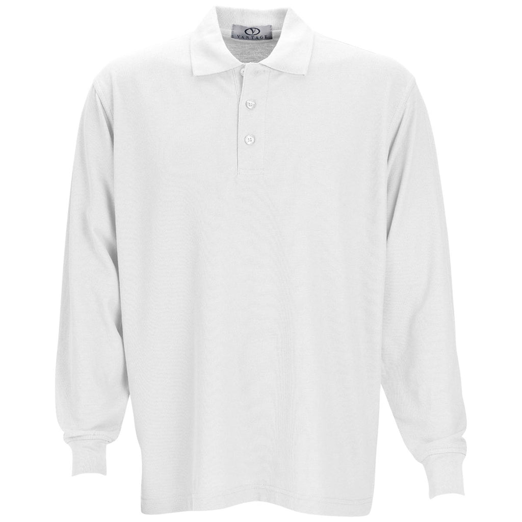 Vantage Men's White Long Sleeve Soft-Blend Double-Tuck Pique Polo