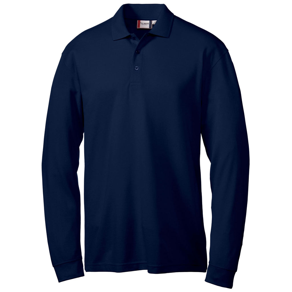 For versatile company apparel, pair the corporate logoed Clique Men's Navy Blue Long Sleeve Evans with casual jeans or more formal dress slacks. The blended cottons and polyester fabric delivers super softness and long lasting durability. Add a custom logo on the large embroidery area to connect with professional peers at sales conferences. The 3M stain repel and release finish ensures you look your best throughout a hectic day on the road. Side vents help improve the flow of air around the body to keep you comfortably dry and cool. A touch of spandex improves body movement flexibility.Corresponding Women's Style: Clique Women's Navy Blue Long Sleeve Elmira Polo