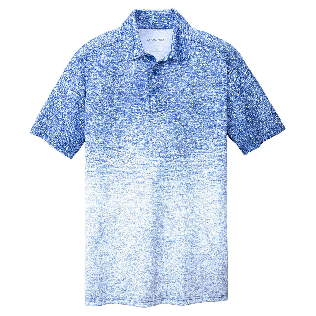 Designed with an allover sublimated print to create an innovative twist on traditional athletic colors, the company logoed Sport-Tek Men's White/True Royal Ombre Heather Polo sets the standard for versatile polos. Attach a custom logo on the large imprint area to leave a lasting positive impression on the potential customers you interact with at industry trade shows. Snag resistant to prevent tearing, the sleek polo includes a self-fabric collar and open hem sleeves. Side vents encourage the circulation of air to cool the body when the competition heats up. Moisture wicking technology keeps the skin comfortably dry all day long. Switch up the usual corporate apparel with this ombre polo from Sport-Tek.Highlights