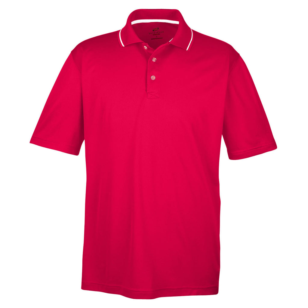 UltraClub Men's Red/White Cool & Dry Sport Two-Tone Polo